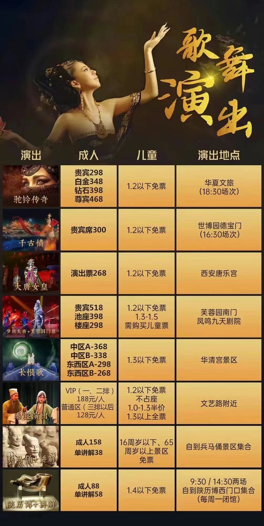 門票:198元/人西安大型實景演出