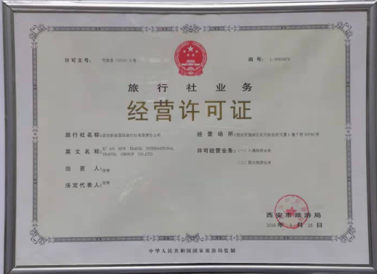 1、依法注冊(cè),合法正規(guī)。西安新旅國際旅行社有限責(zé)任公司(統(tǒng)一社會(huì)信用代碼:91610104MA6TXF953Q)是經(jīng)過工商局和旅游局雙重審批的一家綜合性旅游企業(yè)注冊(cè)資金500萬元,并按國家規(guī)定足額繳納旅行社質(zhì)量保證金。公司主要經(jīng)營國際旅游接待業(yè)務(wù)、入境旅游業(yè)務(wù)、國內(nèi)旅游業(yè)務(wù)、會(huì)議會(huì)展服務(wù)、禮儀慶典策劃組織等服務(wù),是一家大型涉外旅游企業(yè)。