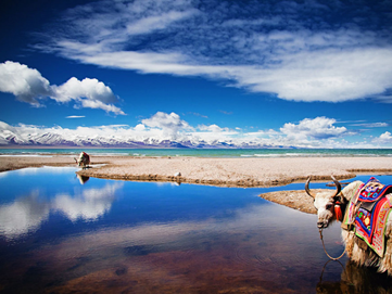 早餐后乘車延青藏線西行轉(zhuǎn)北赴西藏三大圣湖之一的【納木措】(游覽時(shí)間1小時(shí))——海拔4718米,它是世界上海拔最高的咸水湖,它位于唐古拉山脈西南腳下,有如鑲嵌在藏北草原上一顆無暇的翡翠。湖的盡頭是白雪皚皚連錦的雪山,和藍(lán)天下茵茵草地,朵朵羊群以及帳篷里飄出的裊裊欽煙,象是到了遠(yuǎn)離城市喧器的仙境。之后返回拉薩。